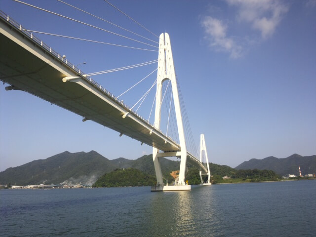 第二次世界大戦の終戦後に引き揚げの拠点となった舞鶴平湾に架けられた鋼製の白い斜張橋である。